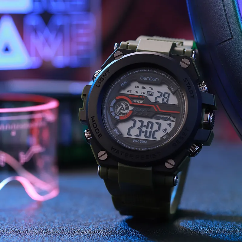 BENKEN Электронный механизм ремешок из TPU мужские часы серый циферблат
