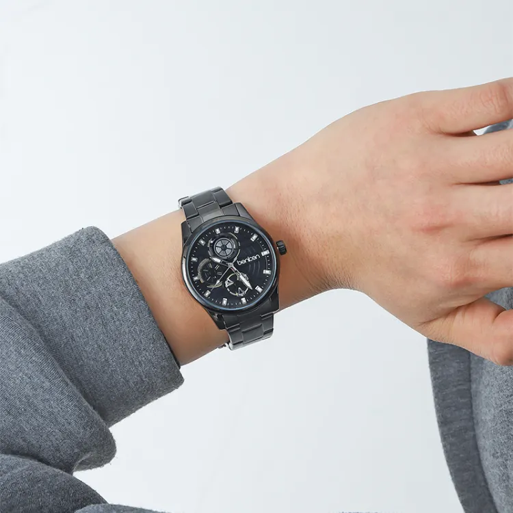 Черный корпус с черным циферблатом - черный стальной браслет