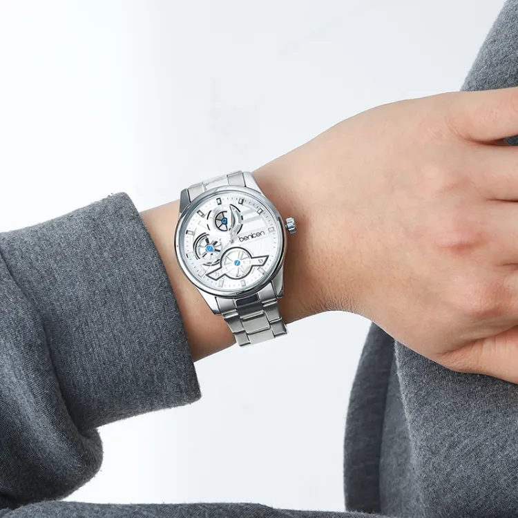 BENKEN Кварцевый механизм сплав ремешок мужские часы белый циферблат
