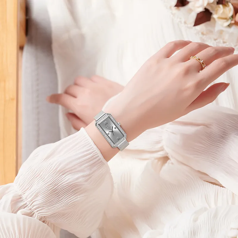 BENKEN Кварцевый механизм нержавеющая сталь ремешок часы женские серебристый циферблат