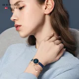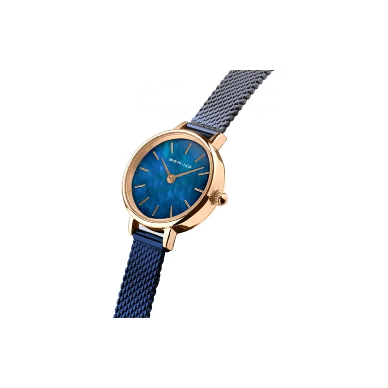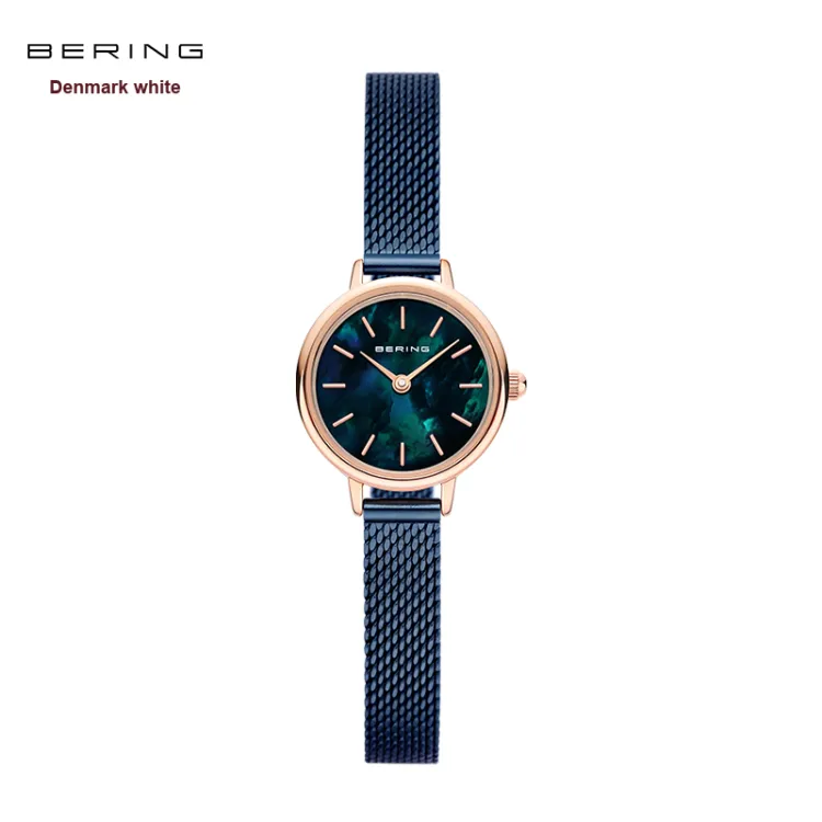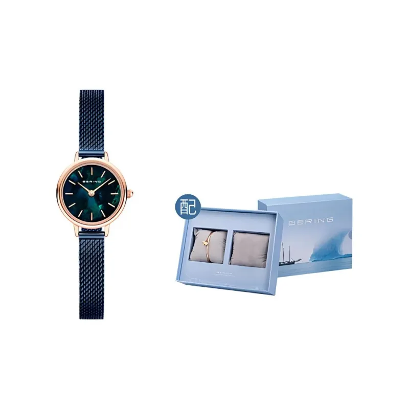 Bering Женские часы Кварцевый механизм Ремешок из нержавеющей стали 22 мм Синий циферблат