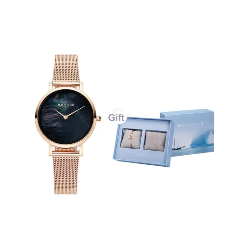 Bering Женские часы Кварцевый механизм Ремешок из нержавеющей стали Черный циферблат