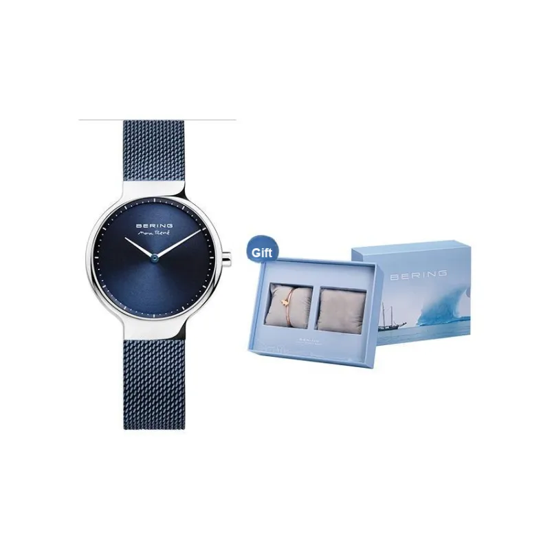 Bering Наручные часы Кварцевый механизм Стальной ремешок 31 мм Синий циферблат Женские часы