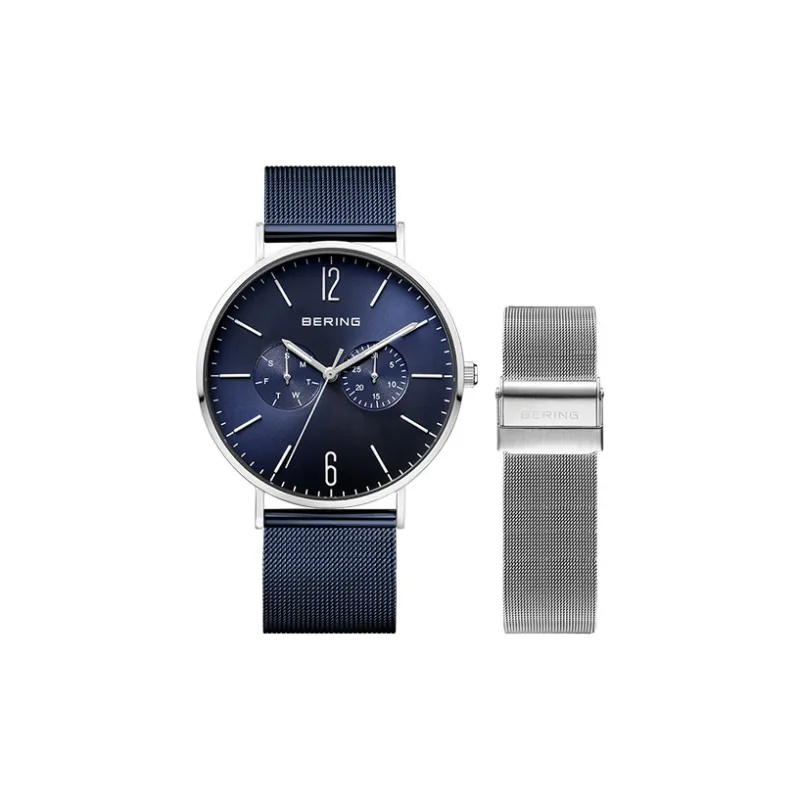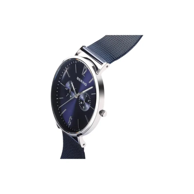 Bering Мужские часы Кварцевый механизм Стальной ремешок 40 мм Синий циферблат