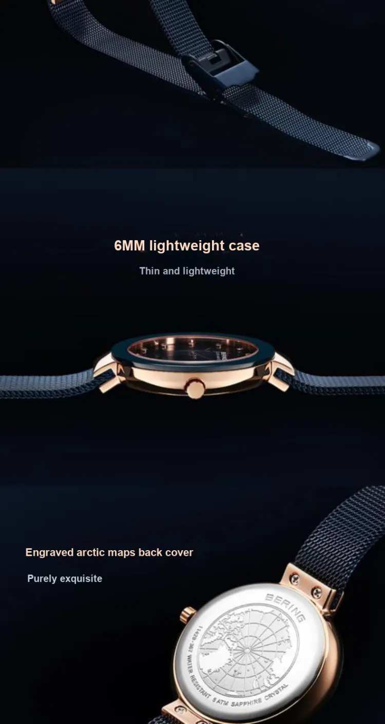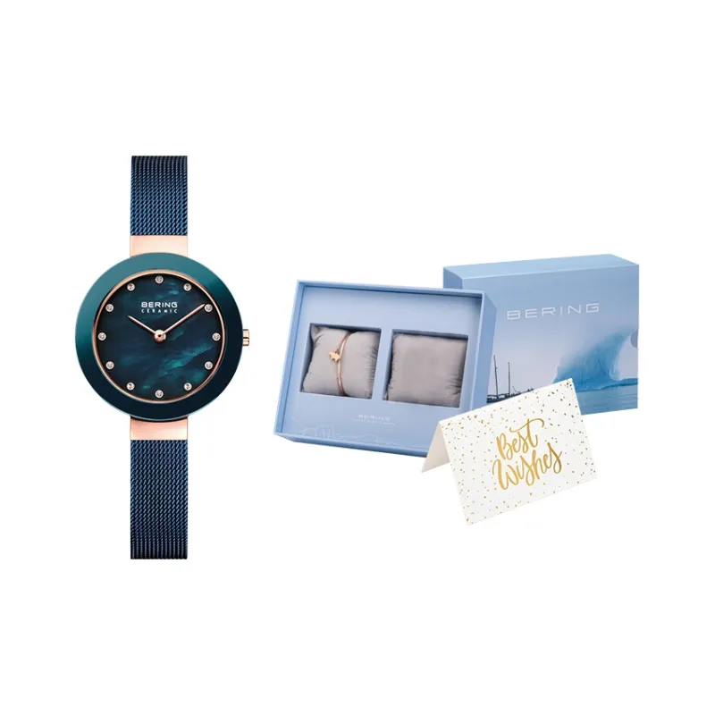 Bering Наручные часы Кварцевый механизм Стальной ремешок Синий циферблат Женские часы