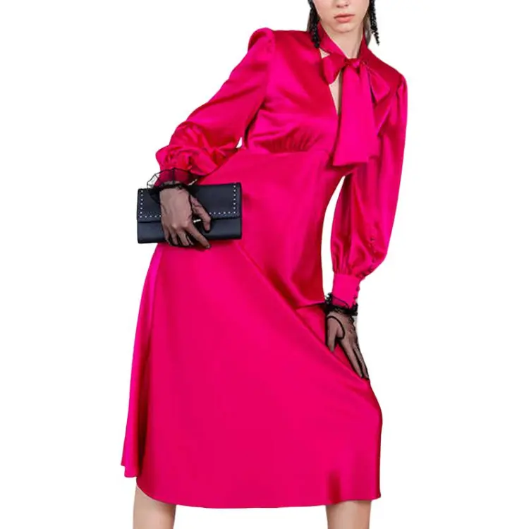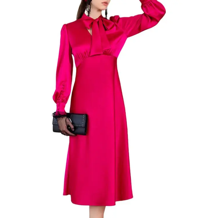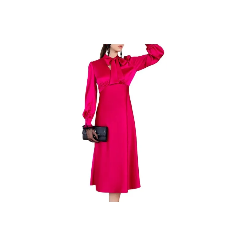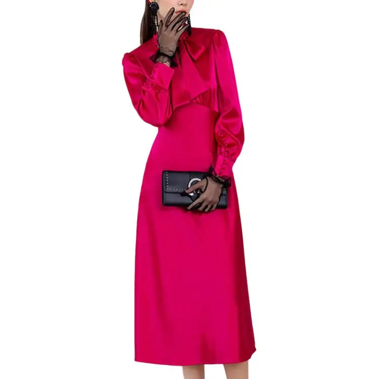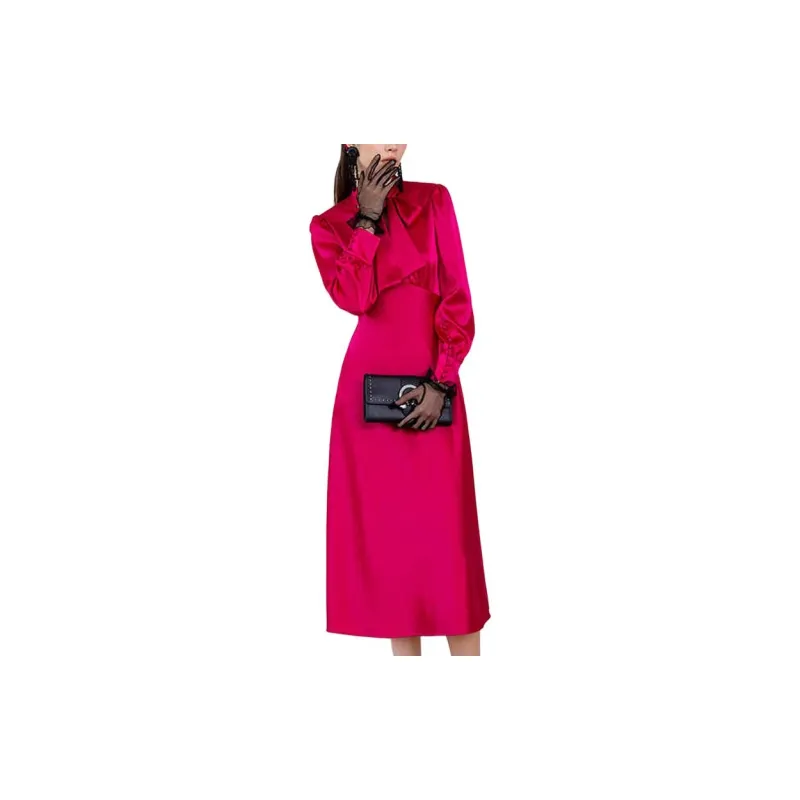 BESIONIA SS23 Длинное Платье с Длинными Рукавами Женское Розово-Красное