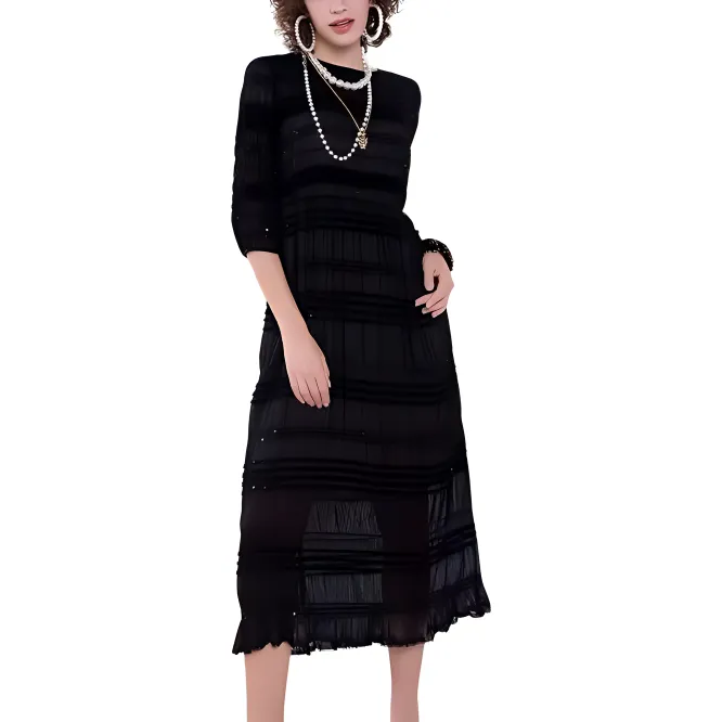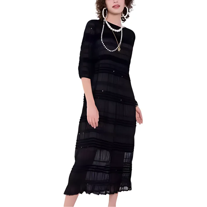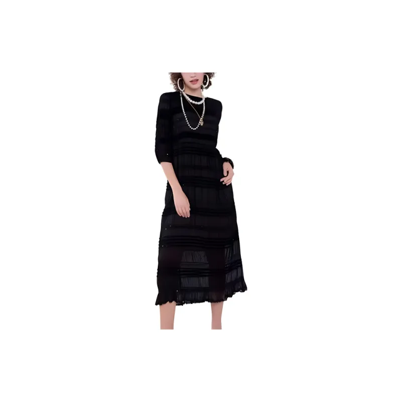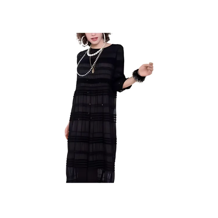 BESIONIA SS23 Короткий рукав Платье Женское Черное