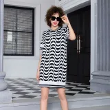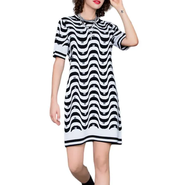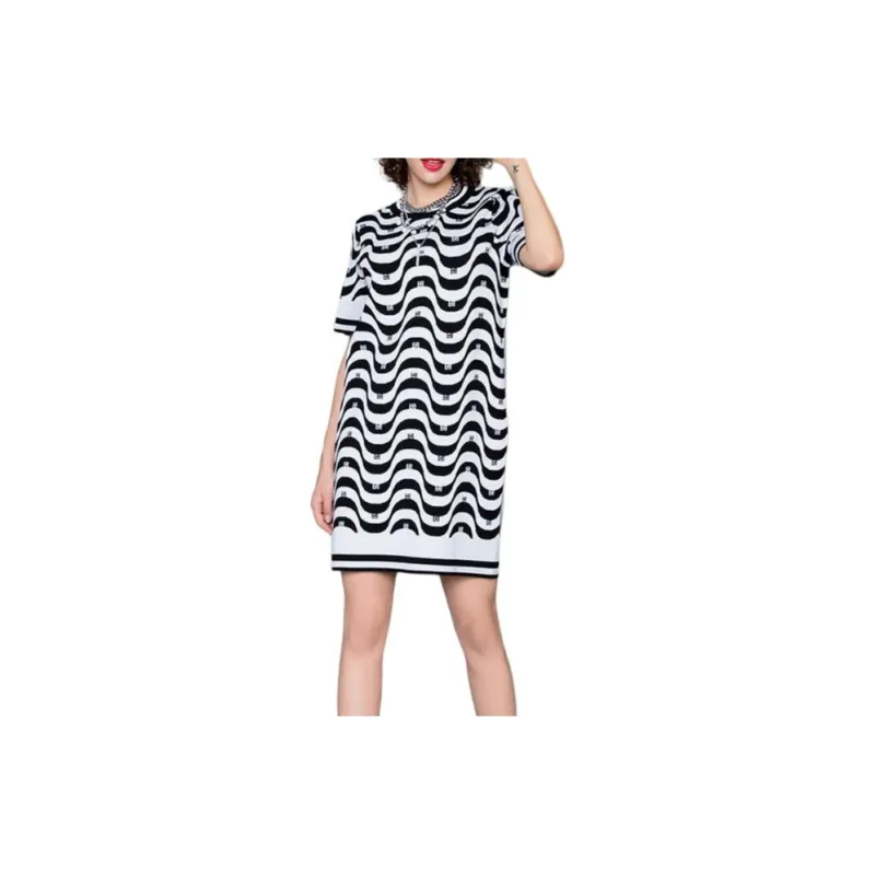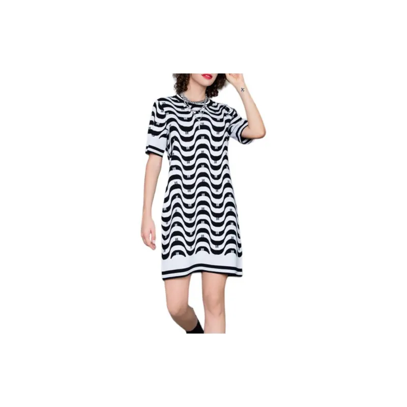 BESIONIA SS23 Короткий рукав Платье Женское Черное Белое