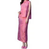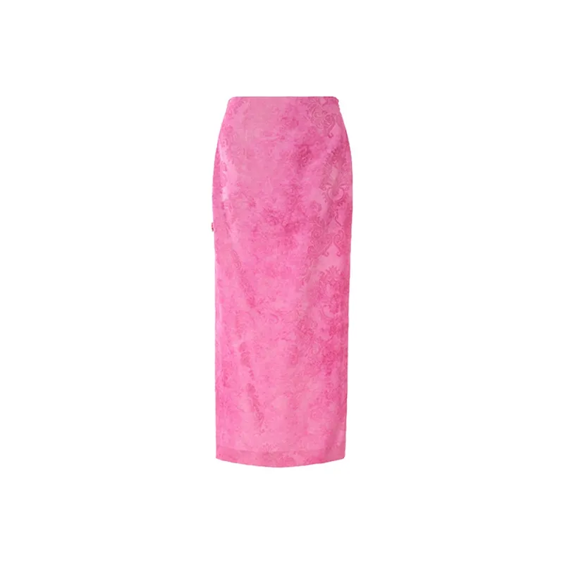 BESIONIA SS25 Повседневный Длинный Юбка Женские Розовые Цветочный