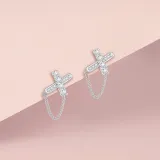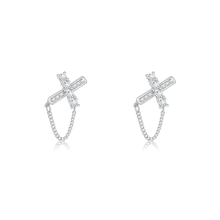 Серьги-гвоздики с серебряной цепью в стиле "крест"