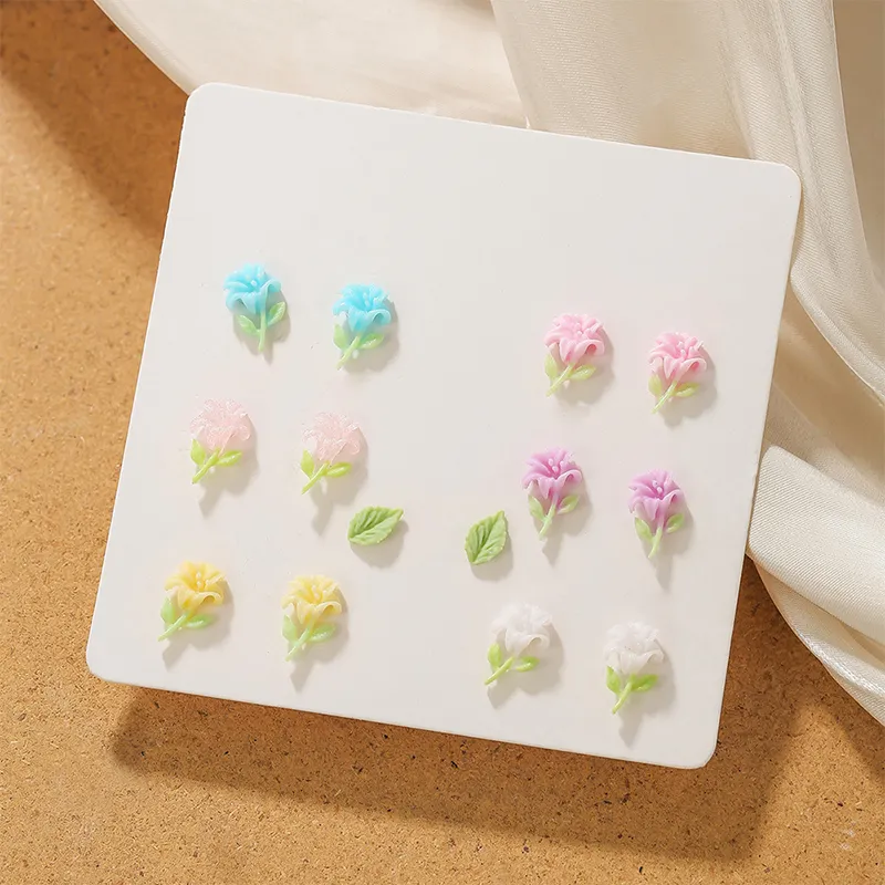 Серьги-гвоздики с цветочным дизайном [7 пар]
