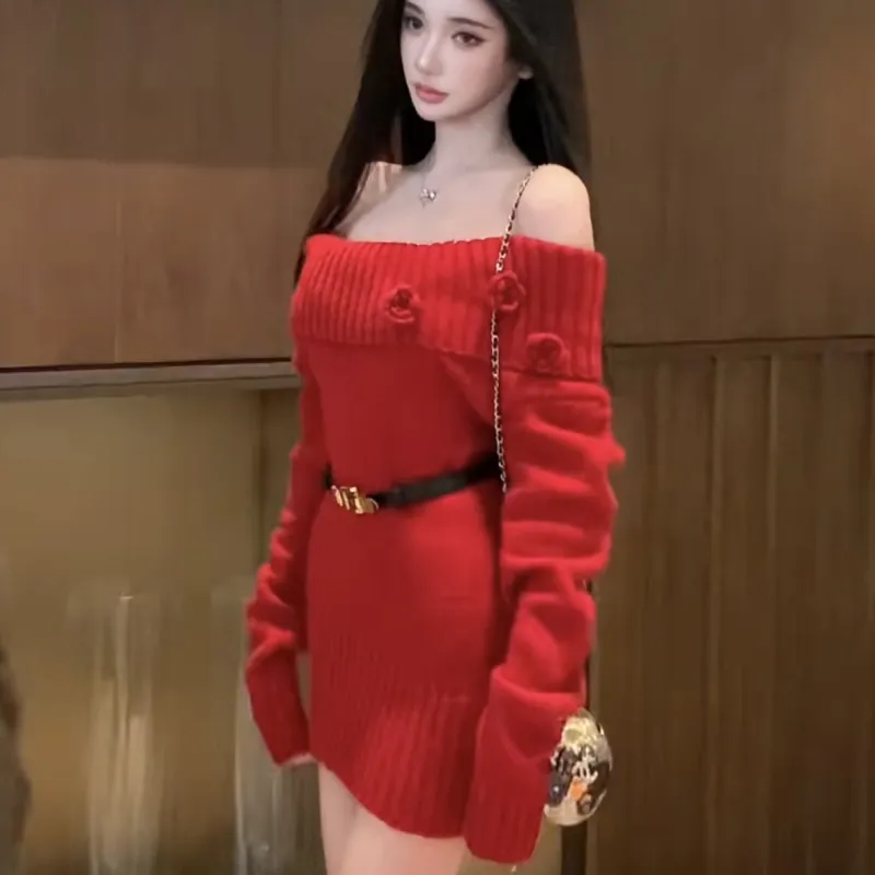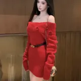 Цвет:Красное платье с поясом
