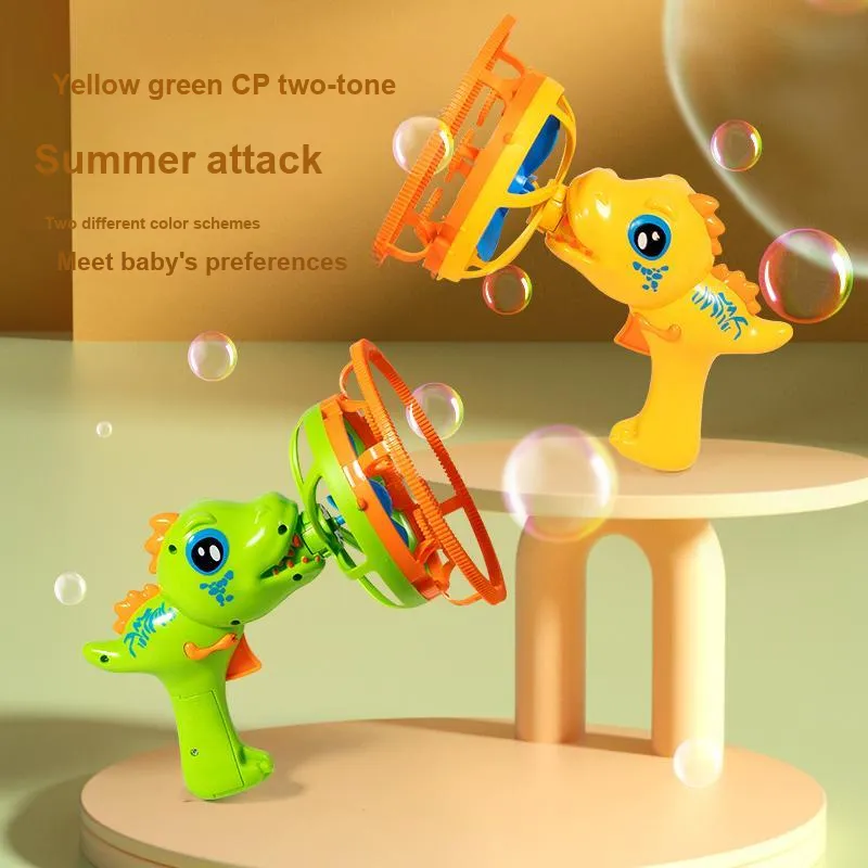 【Батарейка Версия】Желтый Динозавр Пузырьки Pistолет (С подарком 20 упаковок раствора для пузырьков)