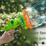 【Батарейка Версия】 Зеленый Динозавр Пузырьки Pistолет (С подарком 20 упаковок раствора для пузырьков)