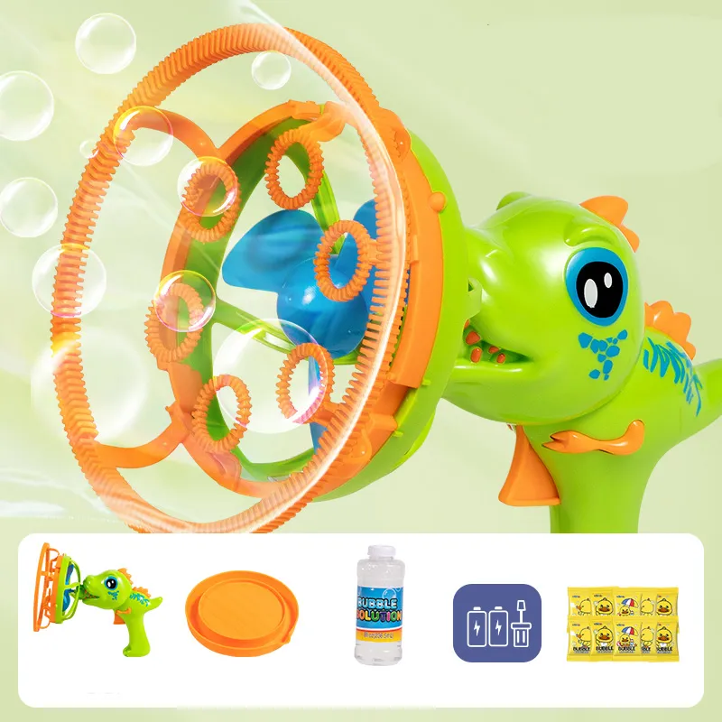 【Зарядка Версия】 Зеленый Динозавр Пузырьки Pistолет (С подарком 20 упаковок концентрата пузырьков)