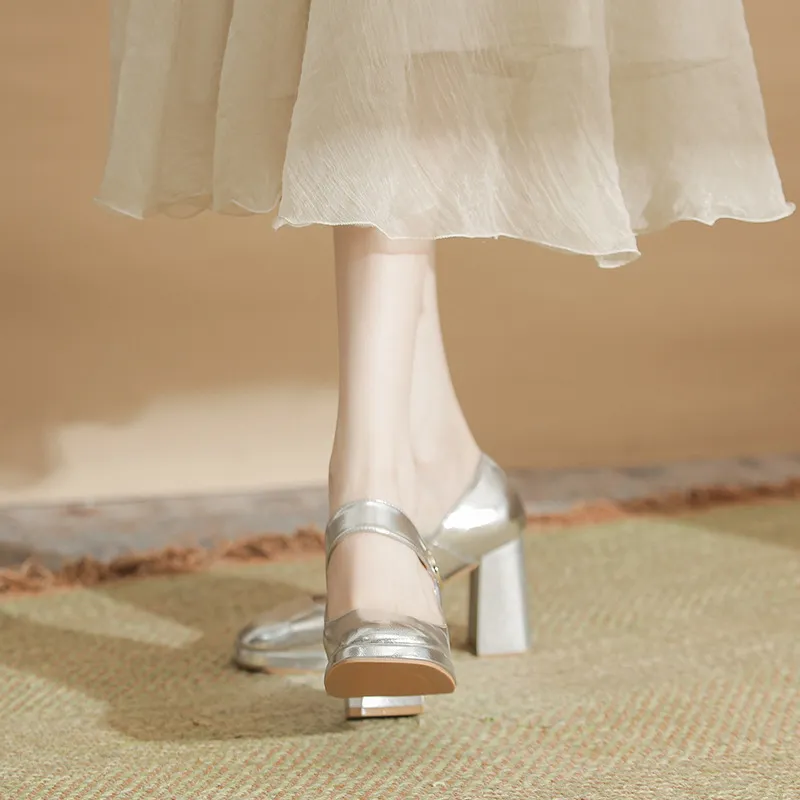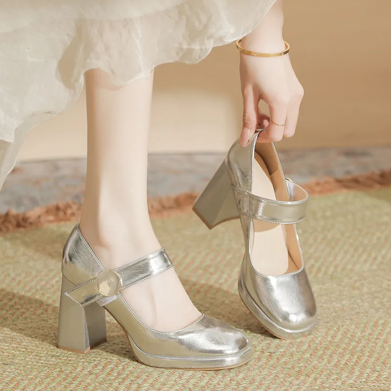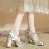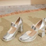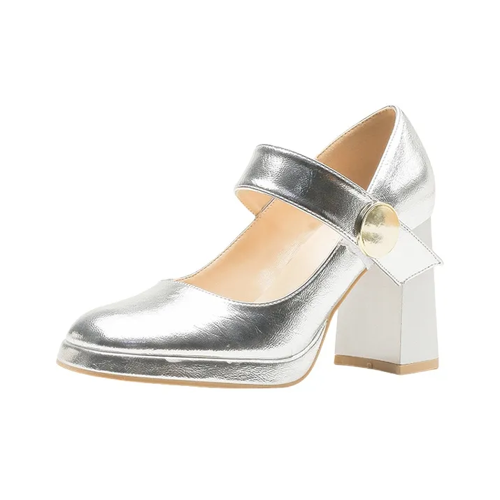 BIGTREE Грубый каблук Туфли Мэри Джейн Женские Серебряные