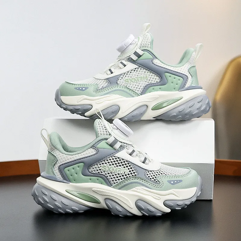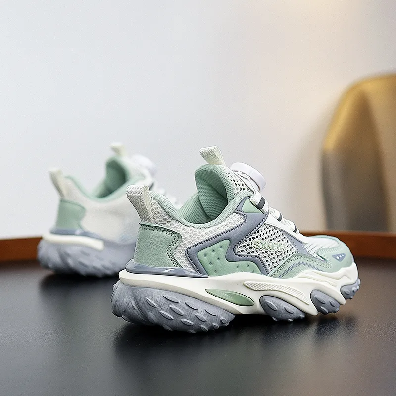 Binary Дышащий Легкий Амортизация Низкий Топ Детские Беговые Кроссовки Светло-Зеленый Детский