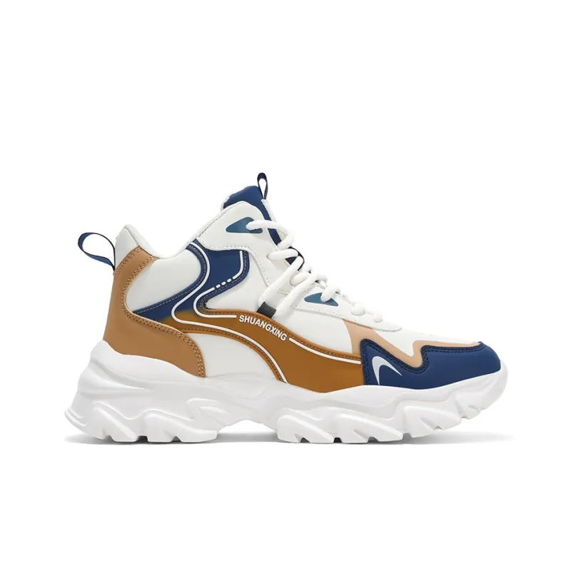 Binary Амортизация Легкий Высокий Топ Толстая Подошва Кроссовки Мужские Белые Темно-Синие