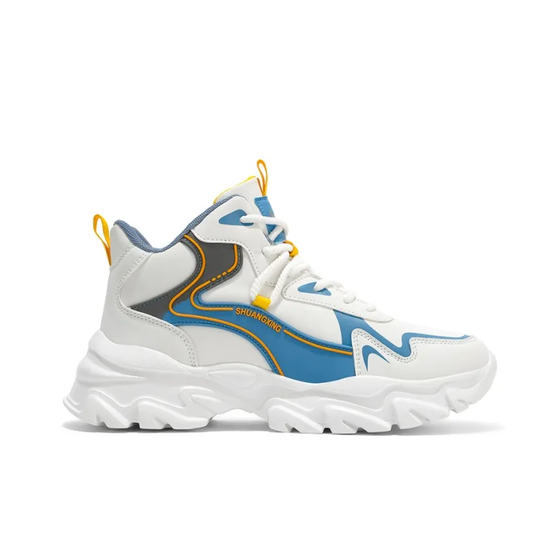 Binary Амортизация Легкий Высокий Топ Толстая Подошва Кроссовки Мужские Белый Светло-Синий