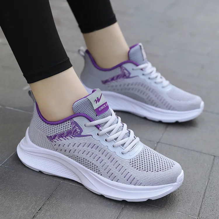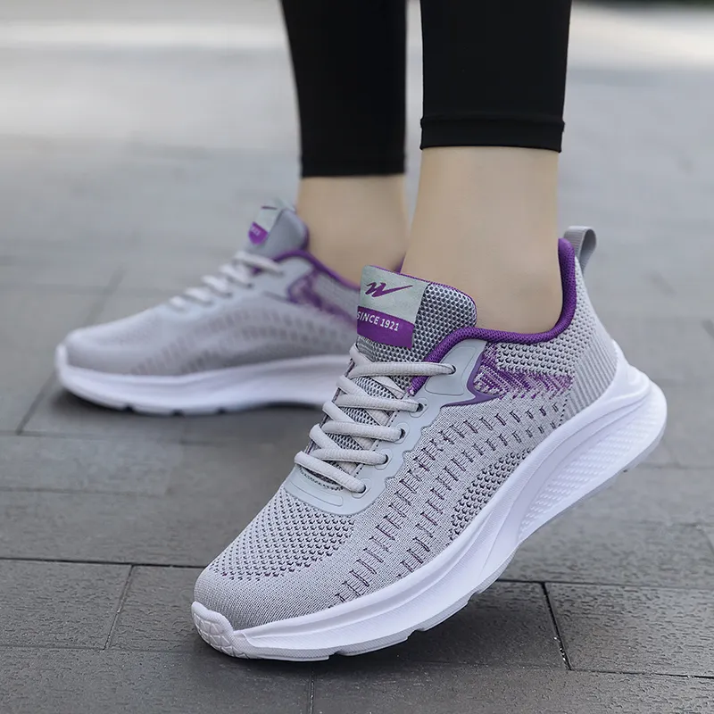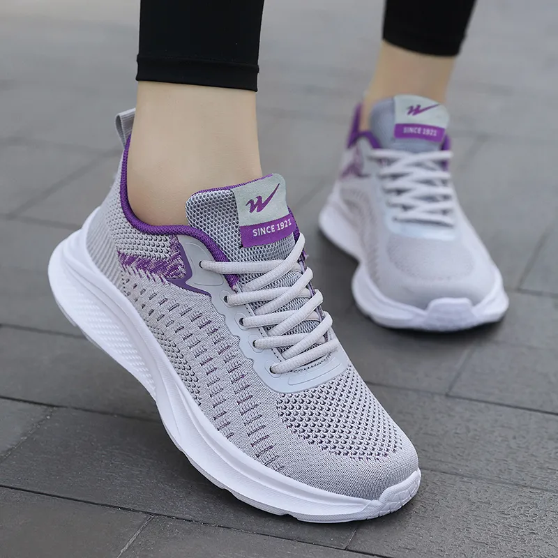 Binary Амортизирующий Нескользящий Износостойкий Дышащий и Легкий Низкий Топ Беговые кроссовки Женские Серый Фиолетовый
