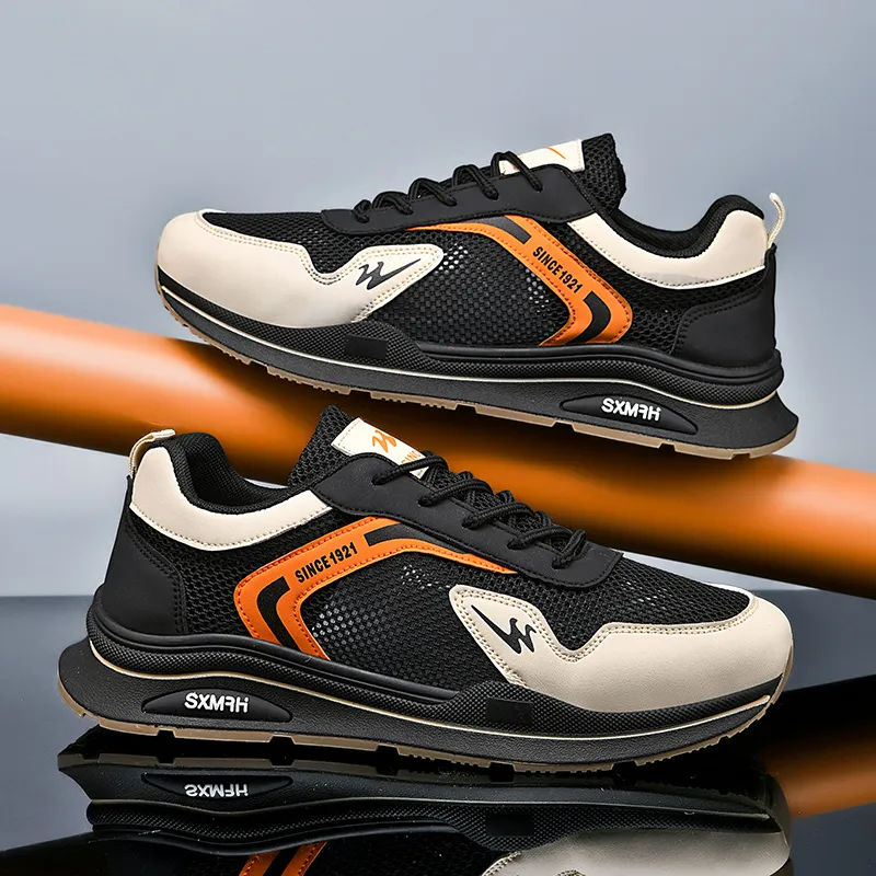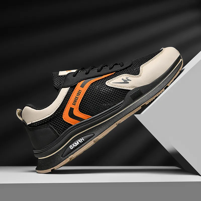 Binary Slip-resistant Breathable Lightweight Low-Top Casual Men's Black Orange Бинарный противоскользящий дышащий легкий низкий топ повседневный мужской черный оранжевый