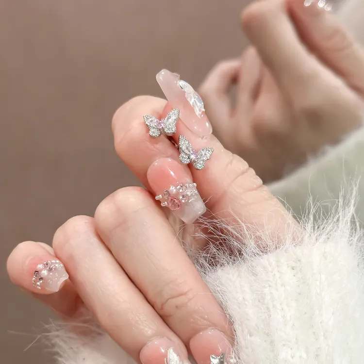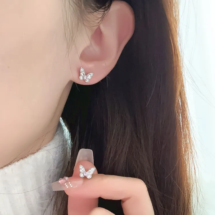 Серьги Sakura Snow Pink с бабочкой - одиночные