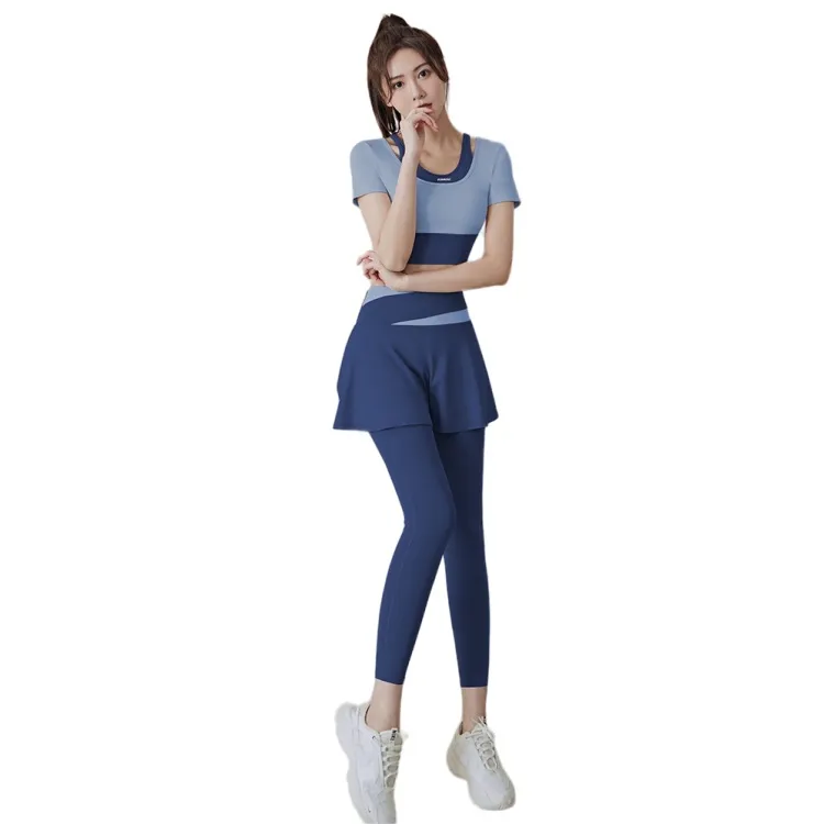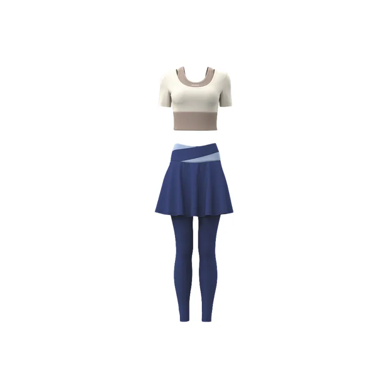 Комплект:【Короткий рукав Костюм】Слоновая кость + Китово-синий