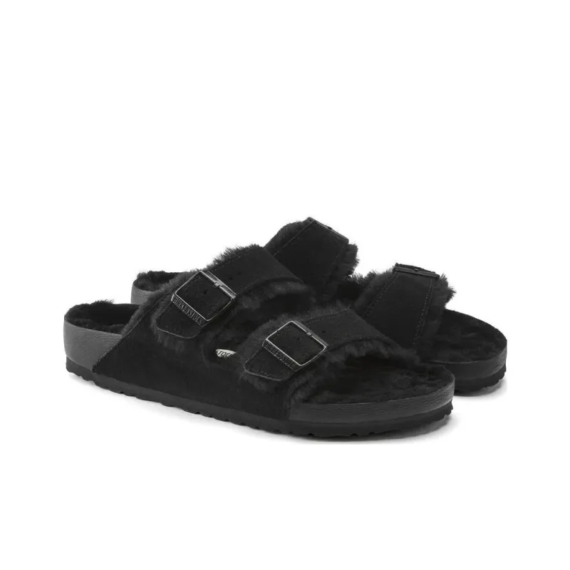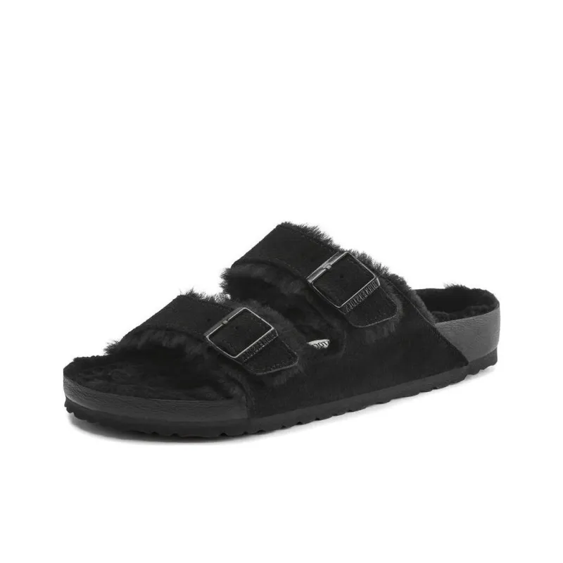 Birkenstock Arizona Shearling Массаж Антибактериальный Слипоны Унисекс Черный Узкая версия