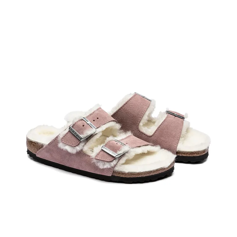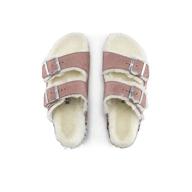 Birkenstock Arizona Shearling Устойчивые к истиранию Слипоны Унисекс Розовые Узкие