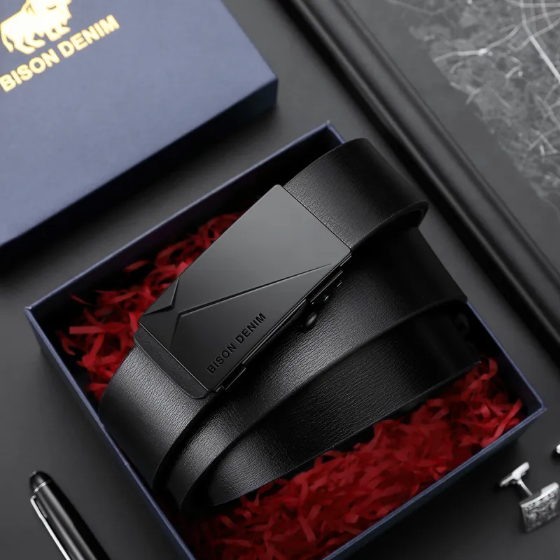 BISON DENIM Автоматическая застежка бизнес мягкий удобный сплав кожа ремни мужской ширина 3,3 см