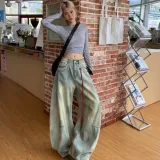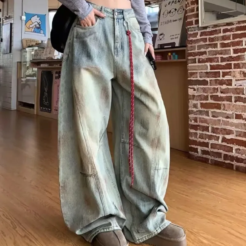 BIXING Синий [Состаривание Ностальгический Стиль] Унисекс Джинсы