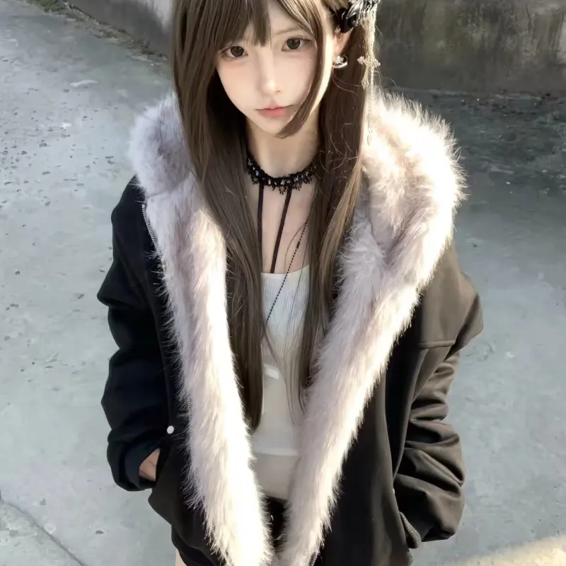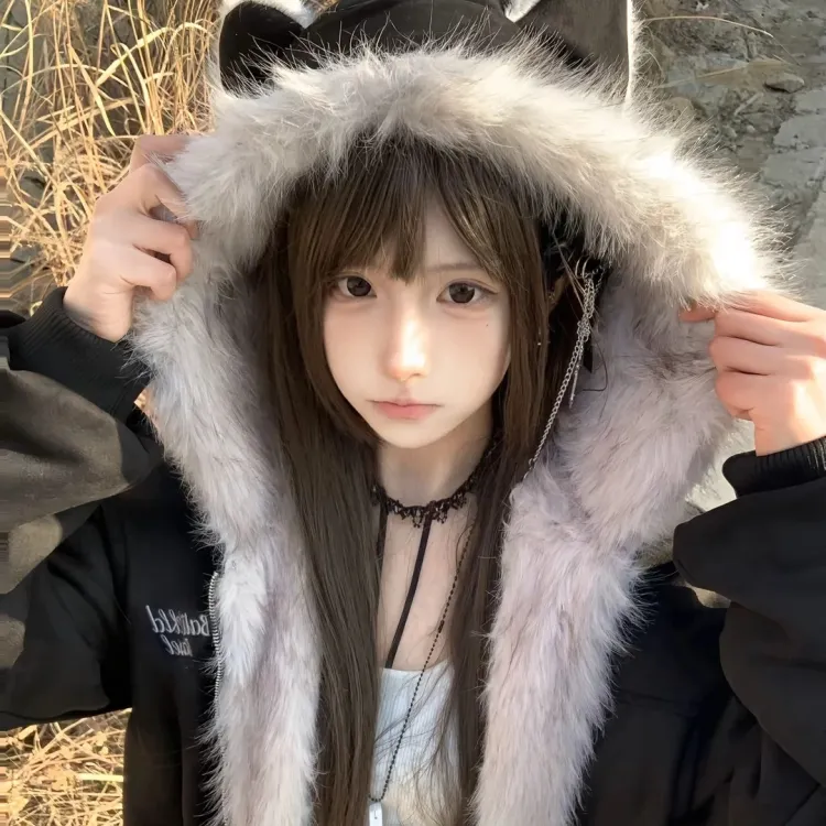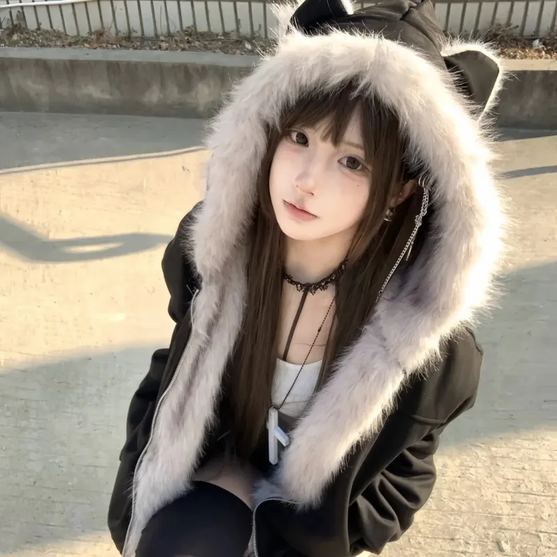 Black [Флисовая подкладка, ушная кошка, милый стиль]