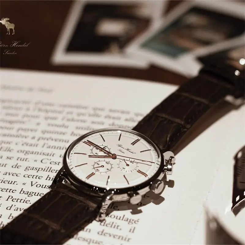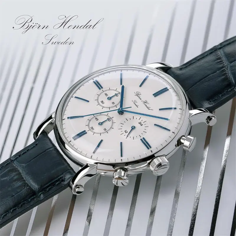 BJORN HENDAL Chronograph Collection Кварцевые часы Електронный механизм Естественная кожа Ремешок Белый циферблат Унисекс C01RW1UL18 22R