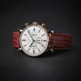Розово-золотой корпус, коричневый ремешок