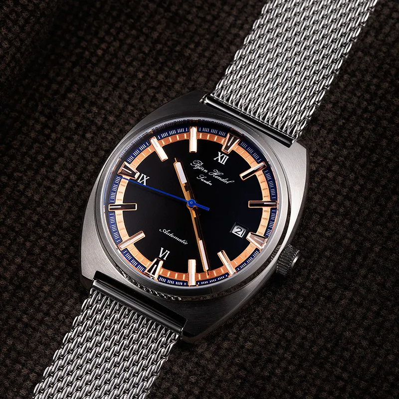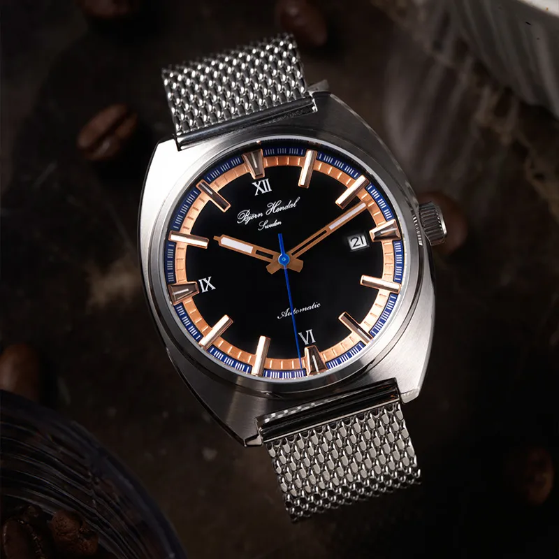 BJORN HENDAL Pino Collection Механические часы корпус из нержавеющей стали ремешок черный циферблат унисекс модель A02SAIBS