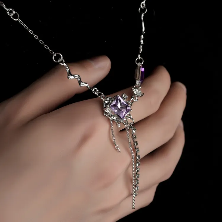 Цвет аметиста, квадратная кисточка, цепочка