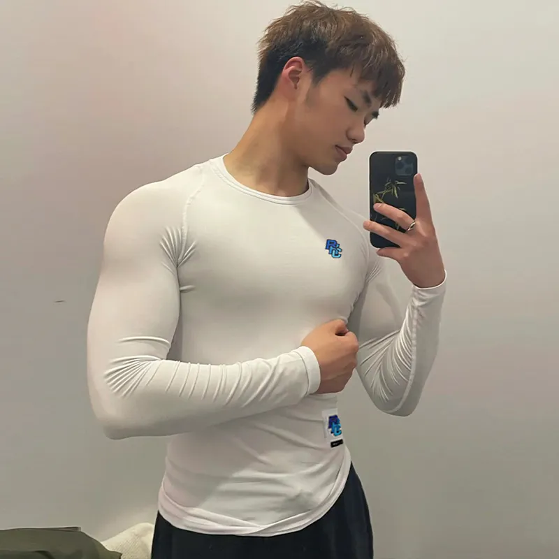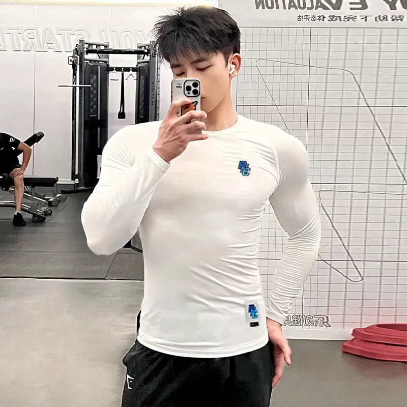 BKCXZICE Тренировочная одежда Running fitness Быстросохнущий Однотонный Универсальный Дышащий Прилегающий T-рубашка Мужская Белая