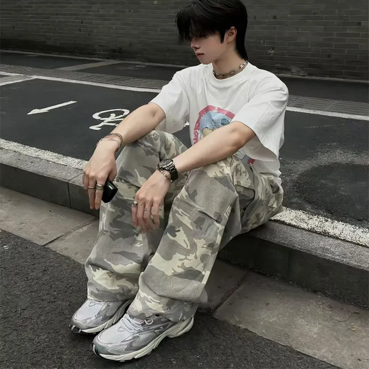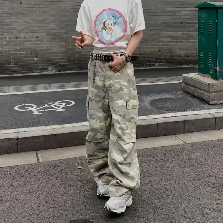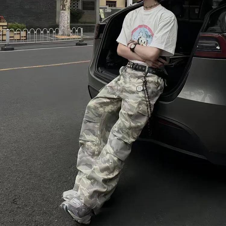 BLACK AT Камуфляж Унисекс Карго Брюки