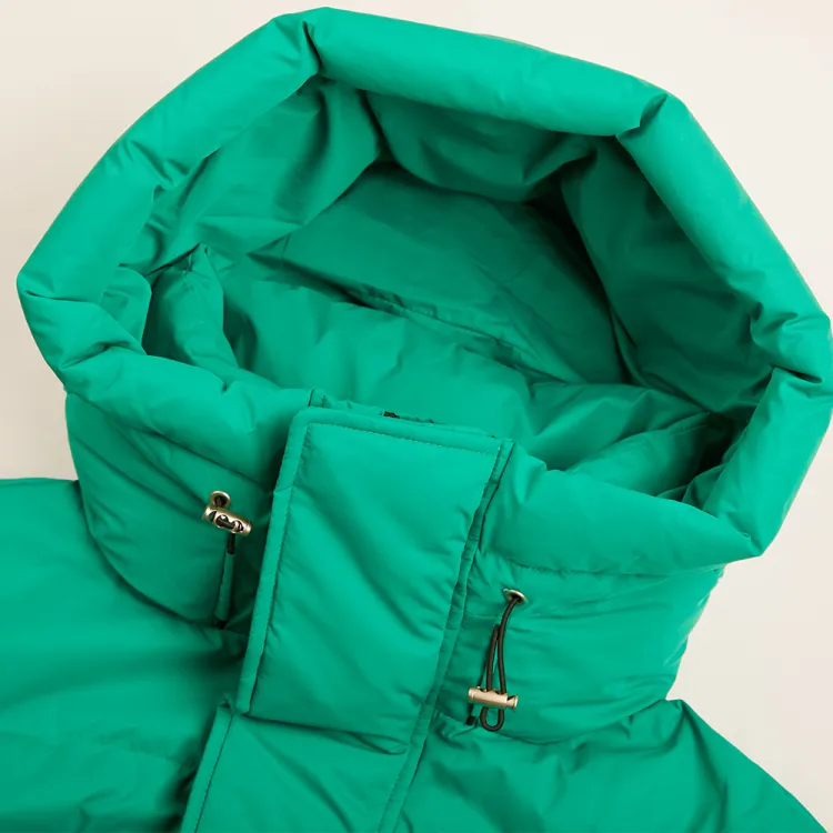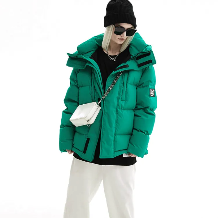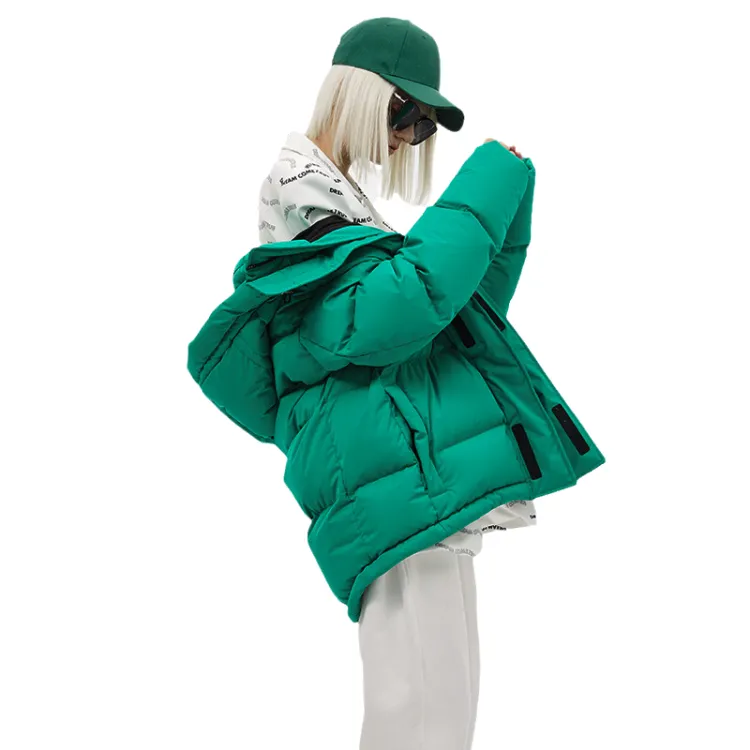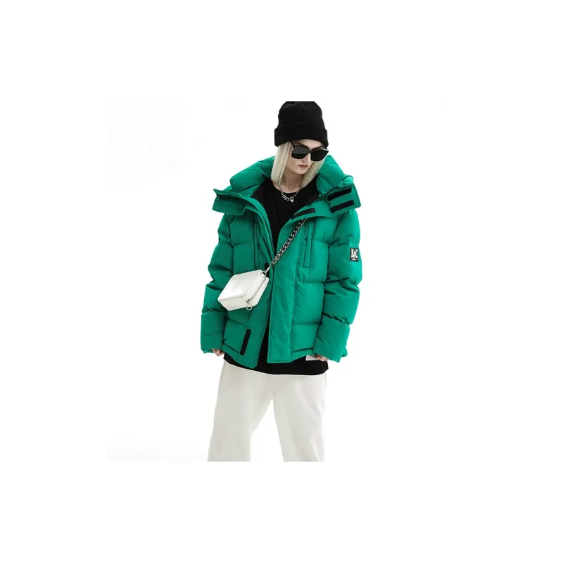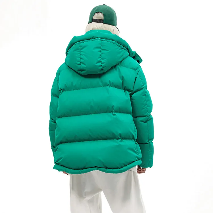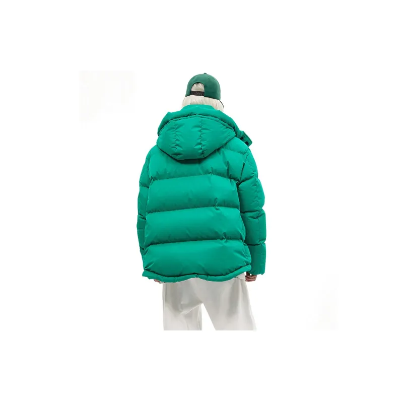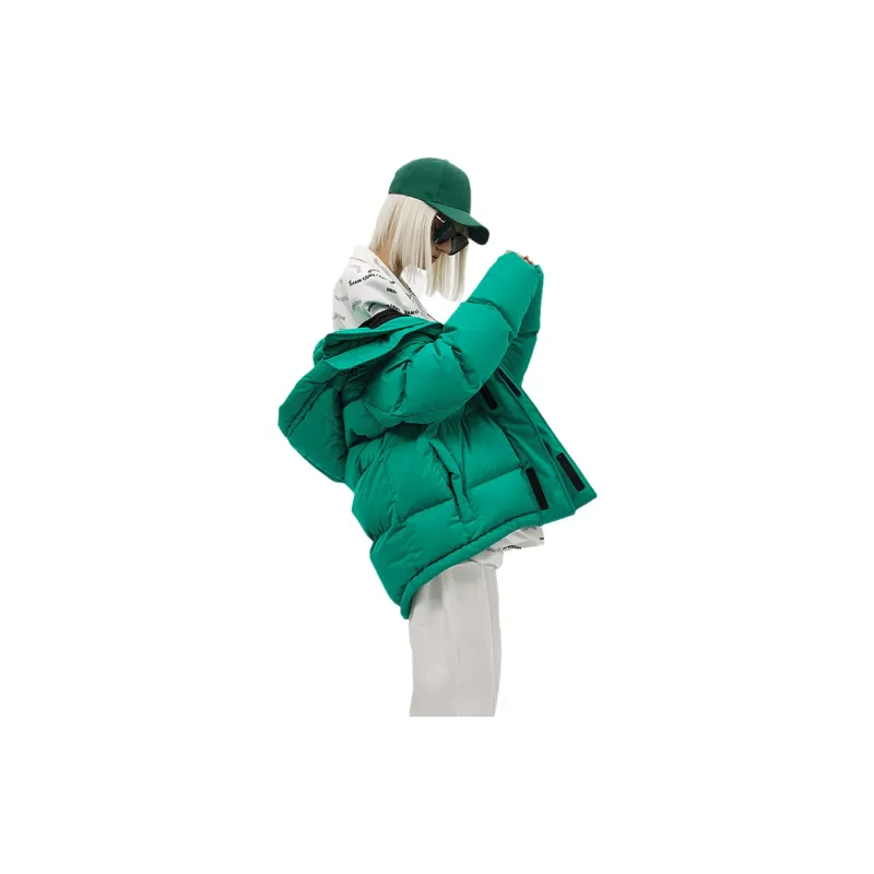 BLACK COLOR Однотонный Съемный капюшон Свободный крой Утолщенный пуховик Женский Зеленый