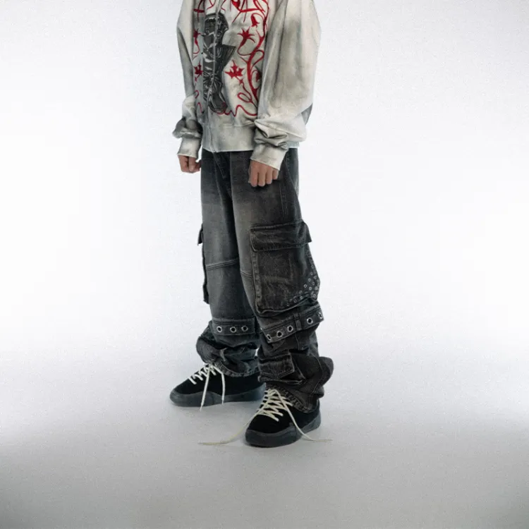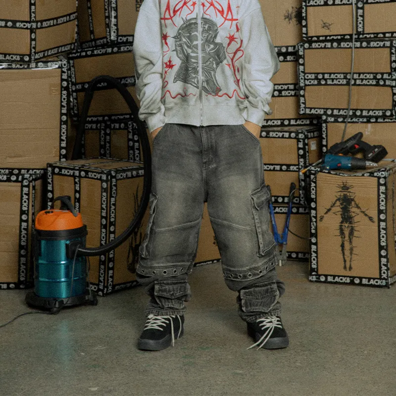 BLACK8MOB AW24 Джинсы Унисекс Серый