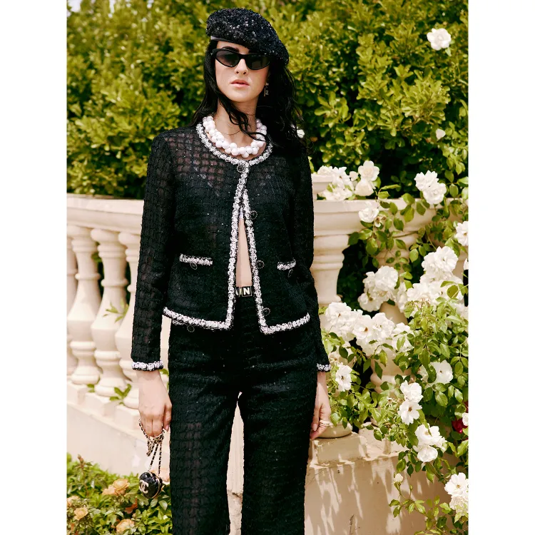 BLACKNINI Кружево Стиль Little Черное Пальто Женские Куртки