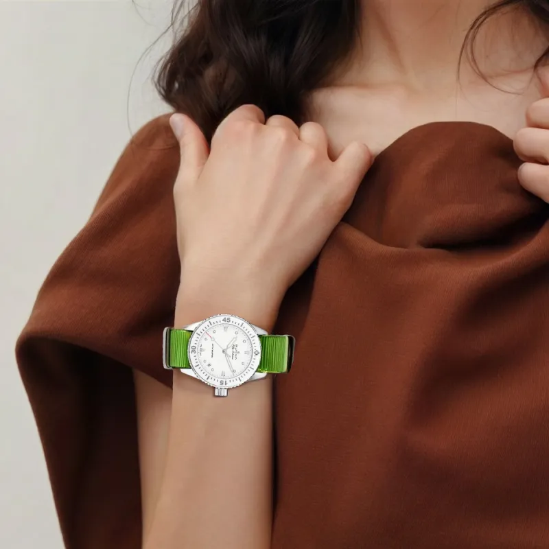 BLANCPAIN Автоматический Механический Механизм Женские Часы 38 мм Белый Циферблат Нержавеющая Сталь Корпус Тканевый Ремешок