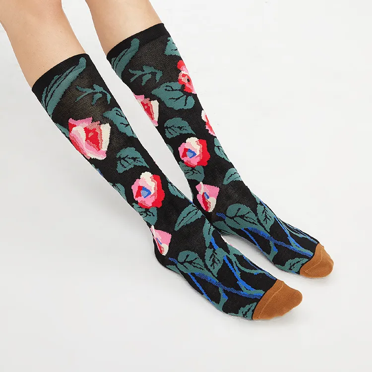 Верхняя часть носка: 64% хлопок, 34% полиэстер, 2% эластан Жаккард: 100% полиамид
