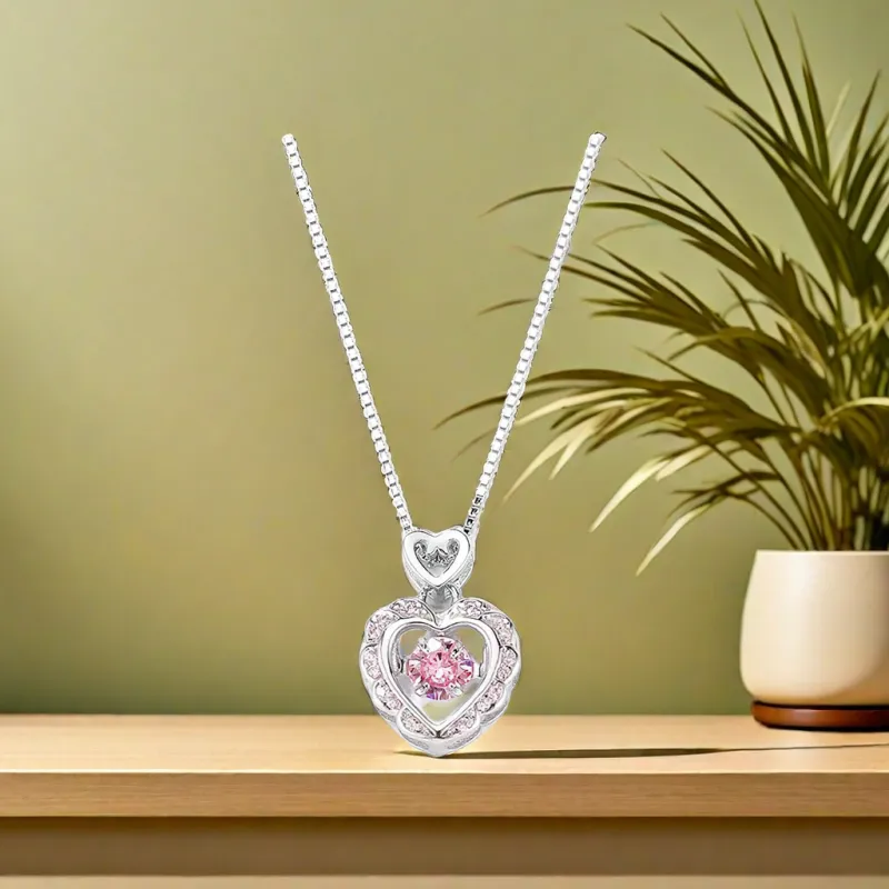 Розовый циркон, ожерелье в форме сердца