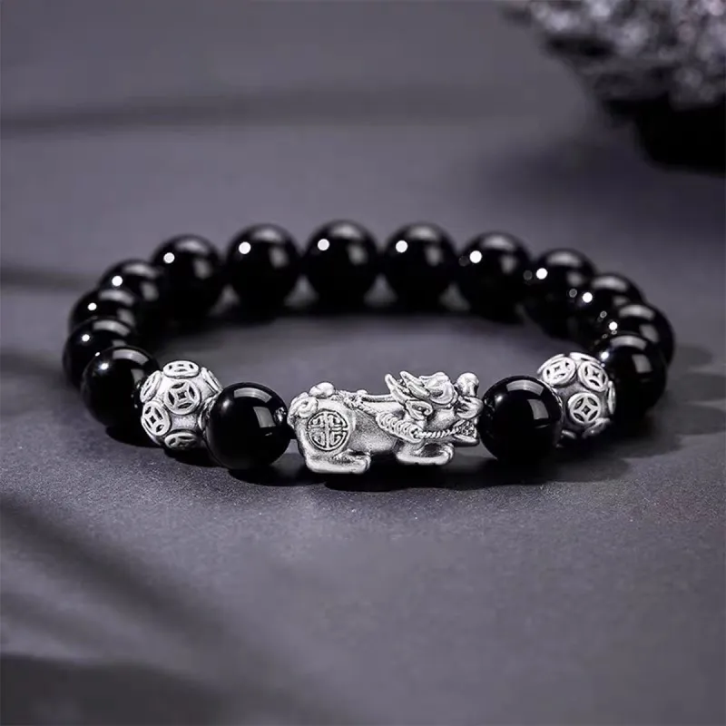 Стиль:Черный браслет с бусинами с китайскими благоприятными животными