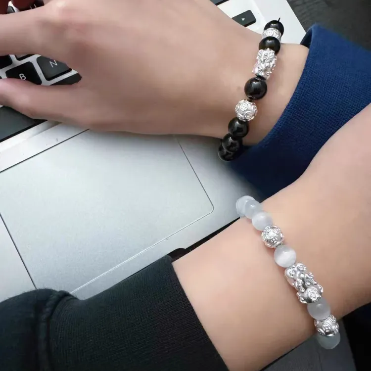 Черный браслет Pi Xiu + Белый браслет Pi Xiu