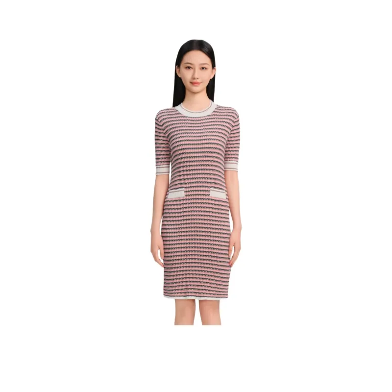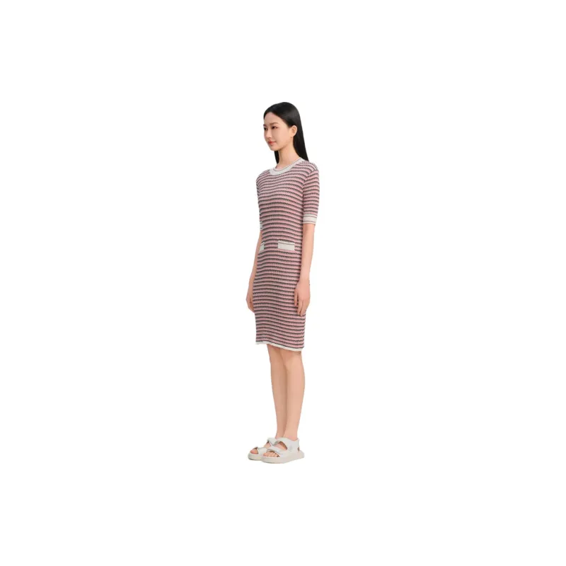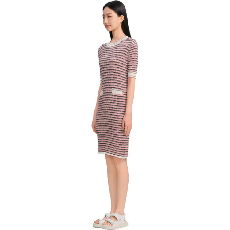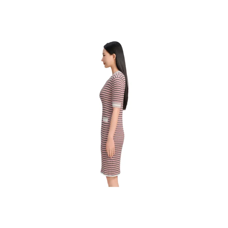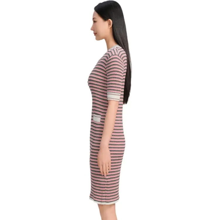 Blood Glitter Короткий рукав Платье Женское Розовые полосы