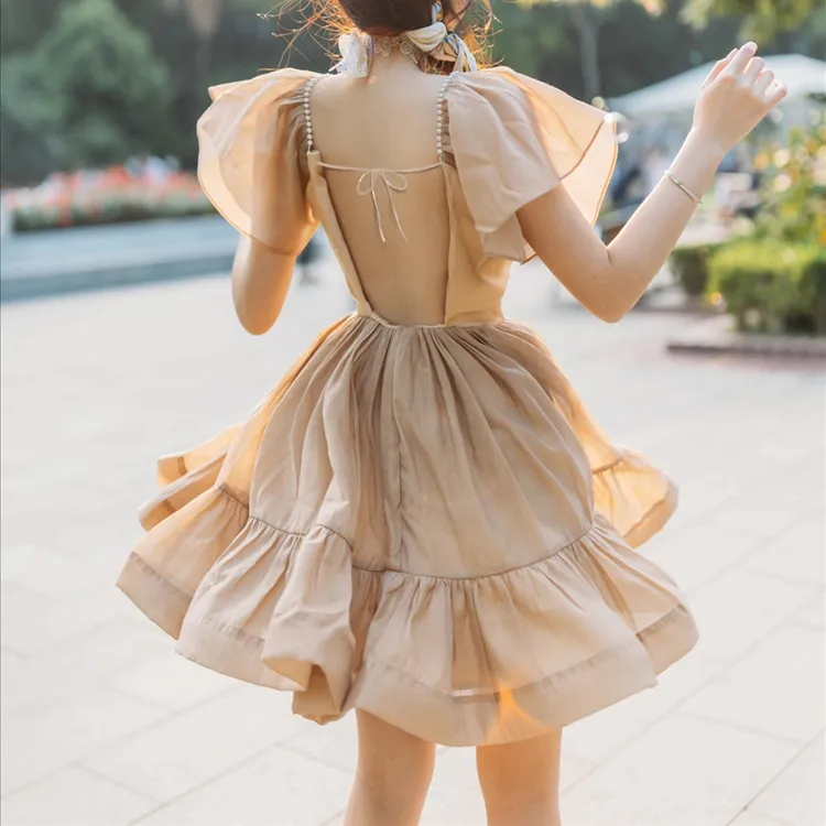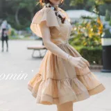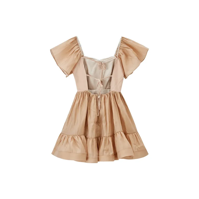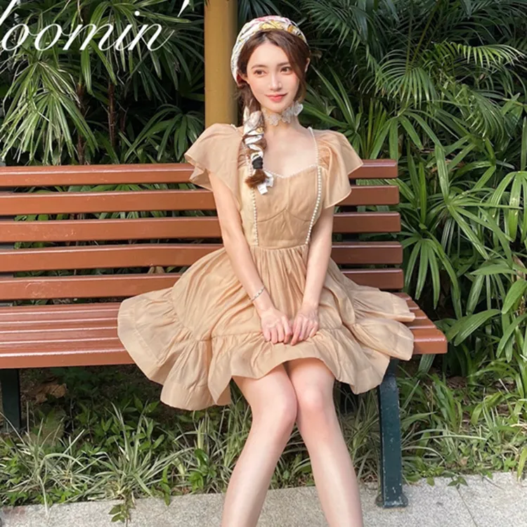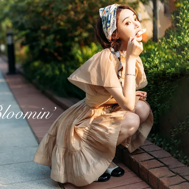 BloominGirls Короткий рукав платье женское абрикосовое