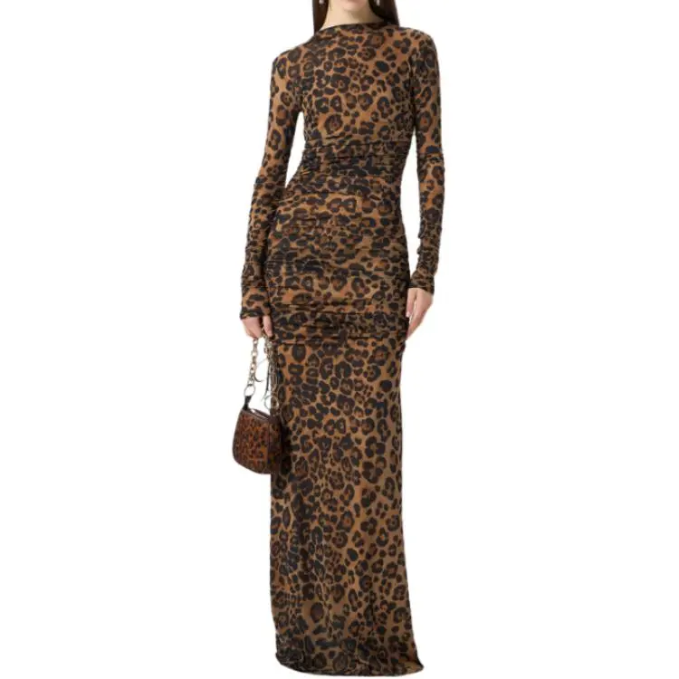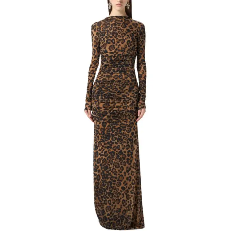 Blumarine Длинное платье с длинными рукавами женское коричневое