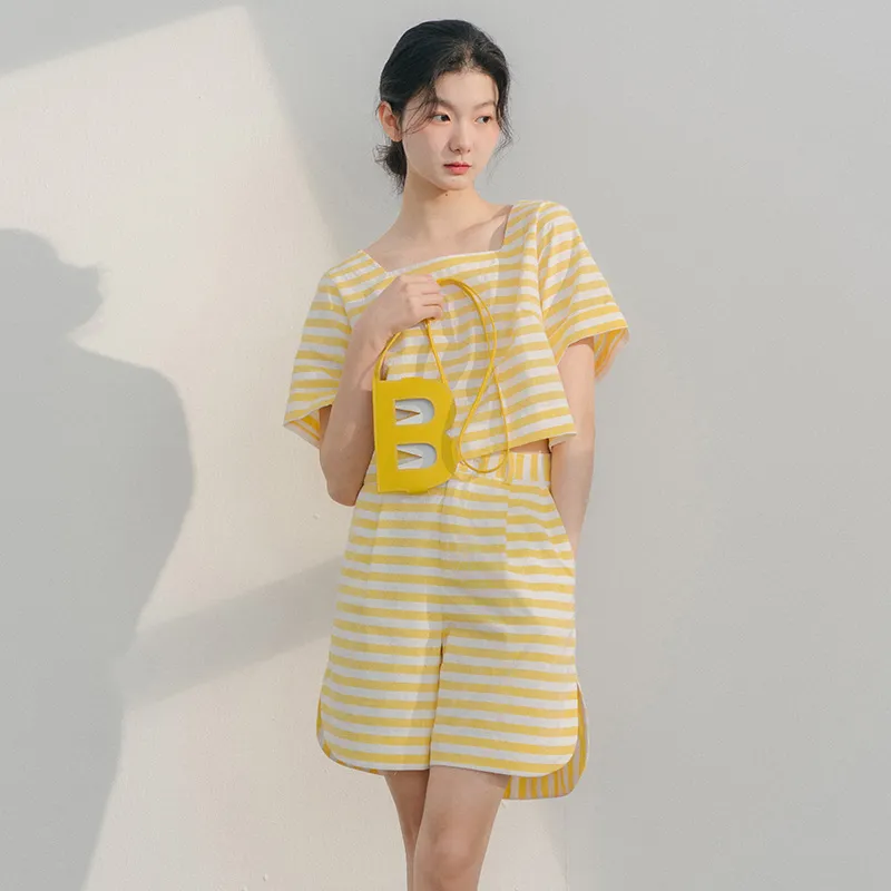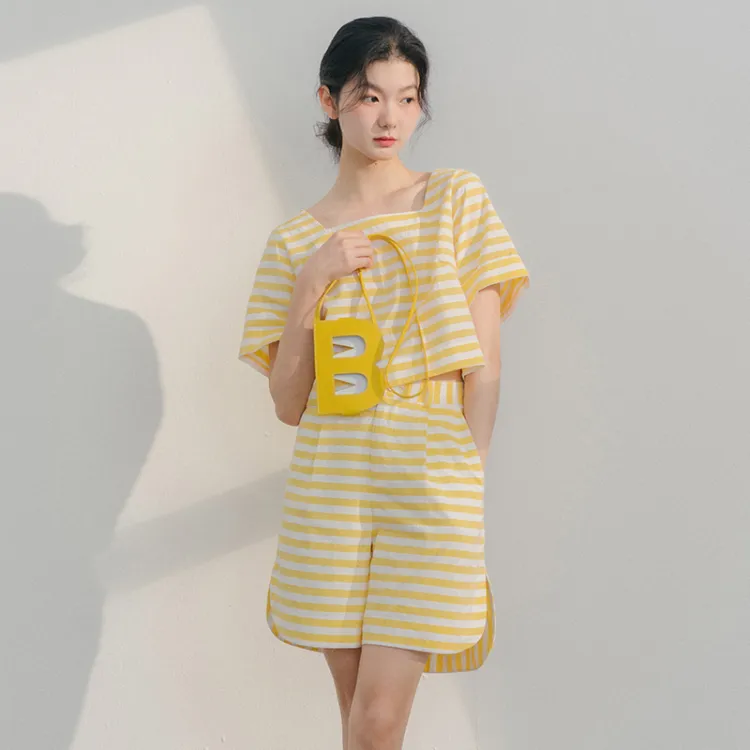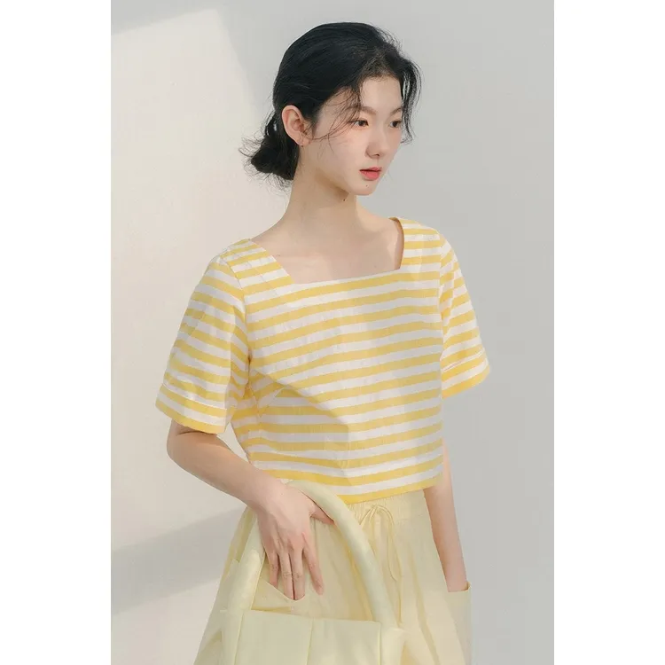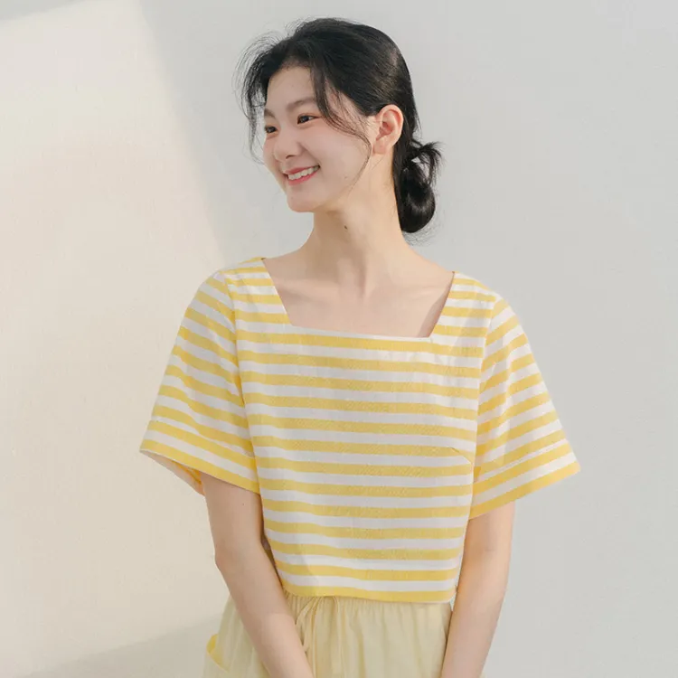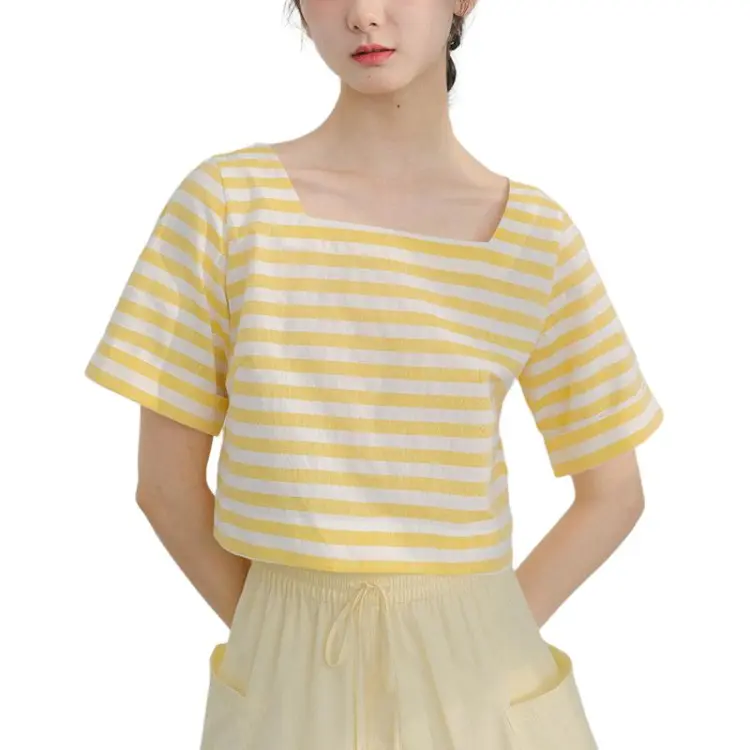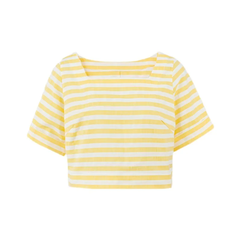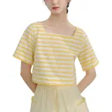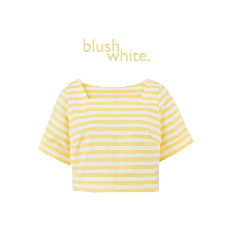 BLUSHWHITE Желтый Белый Полосы T-Рубашка Женская